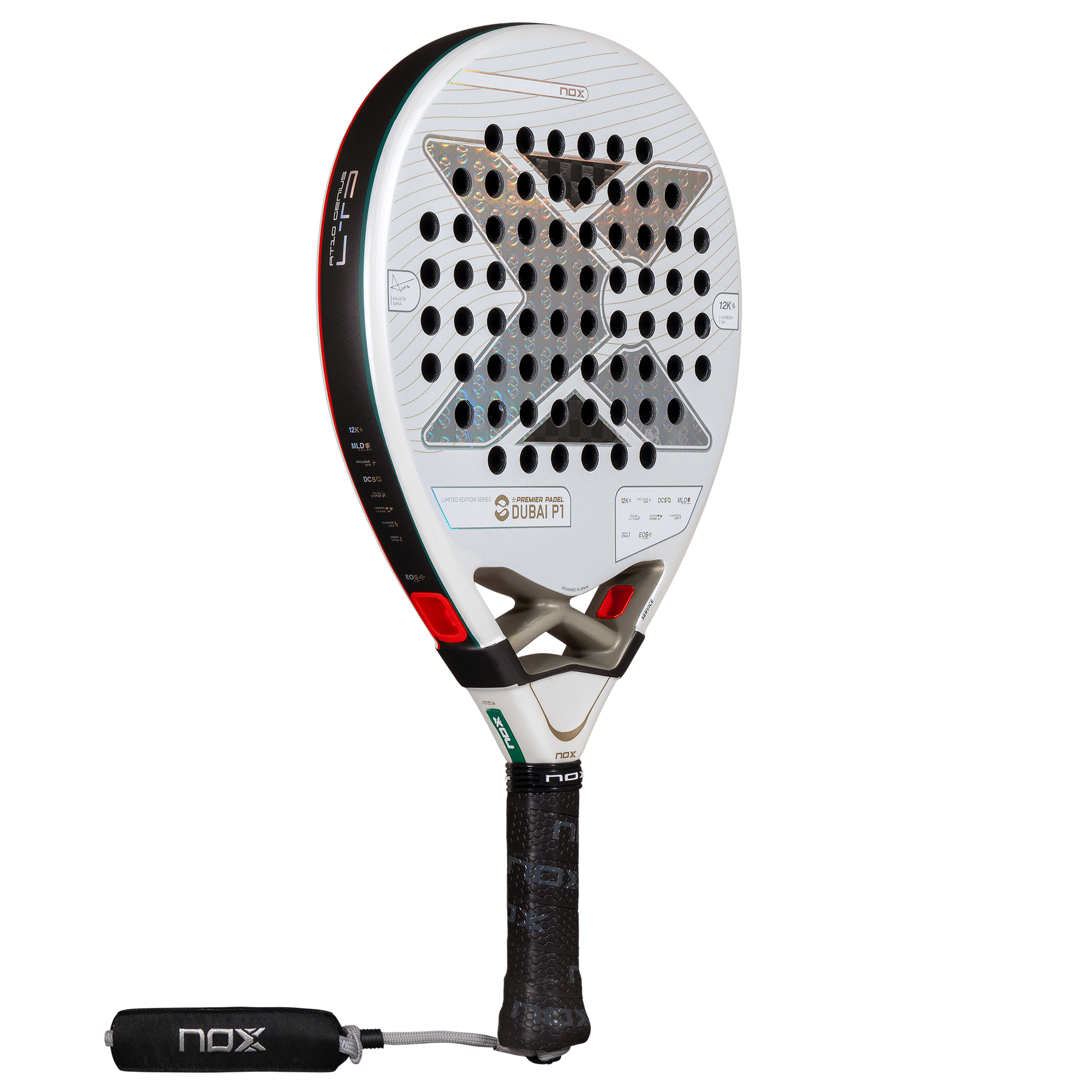 NOX AT10 Genius Dubai LTD er en limitert utgave som feirer Dubai Premier Padel P1 2025. Denne eksklusive racketen er utviklet sammen med Agustín Tapia. Den kombinerer luksusdesign med eliteytelse. Kun 8000 eksemplarer er produsert verden over.