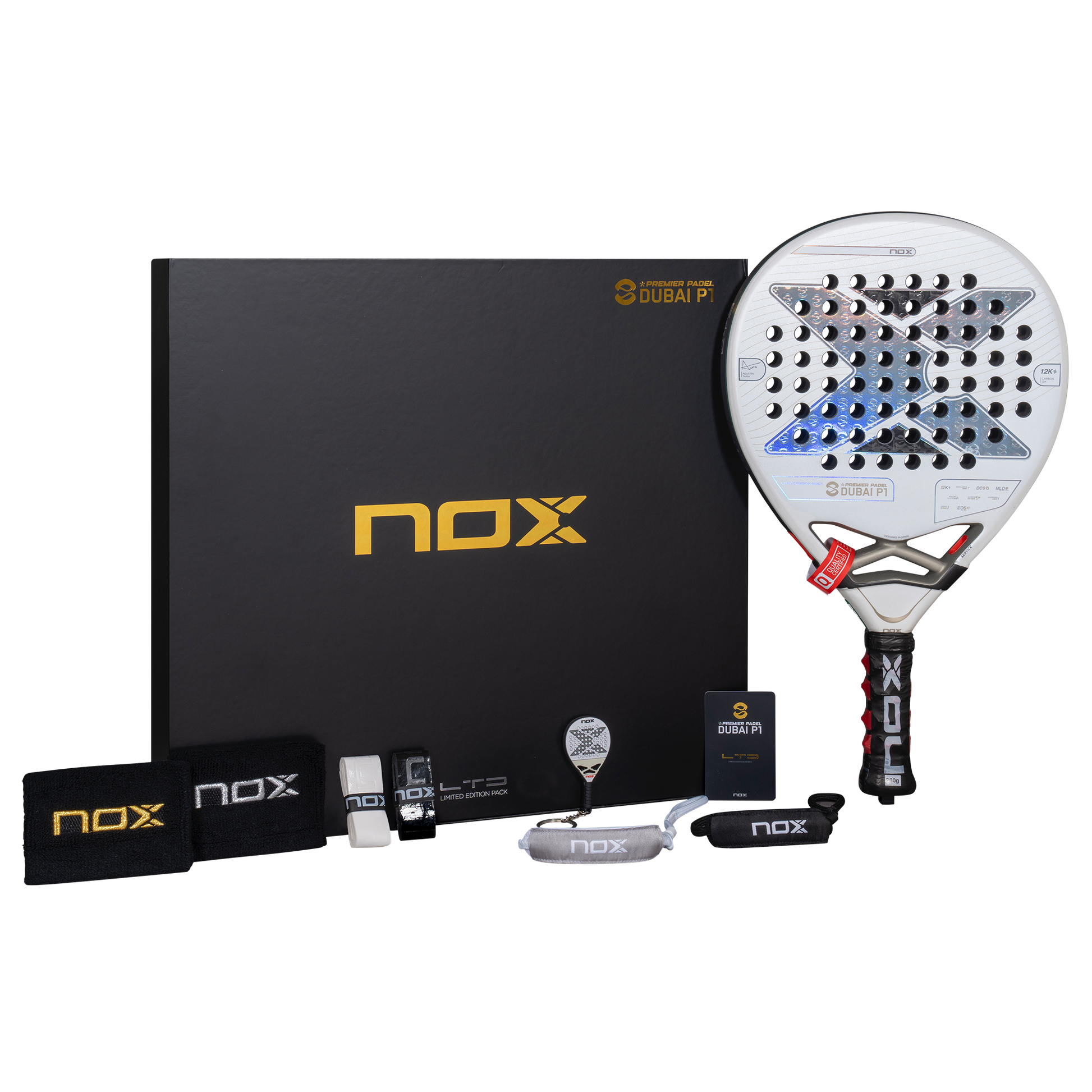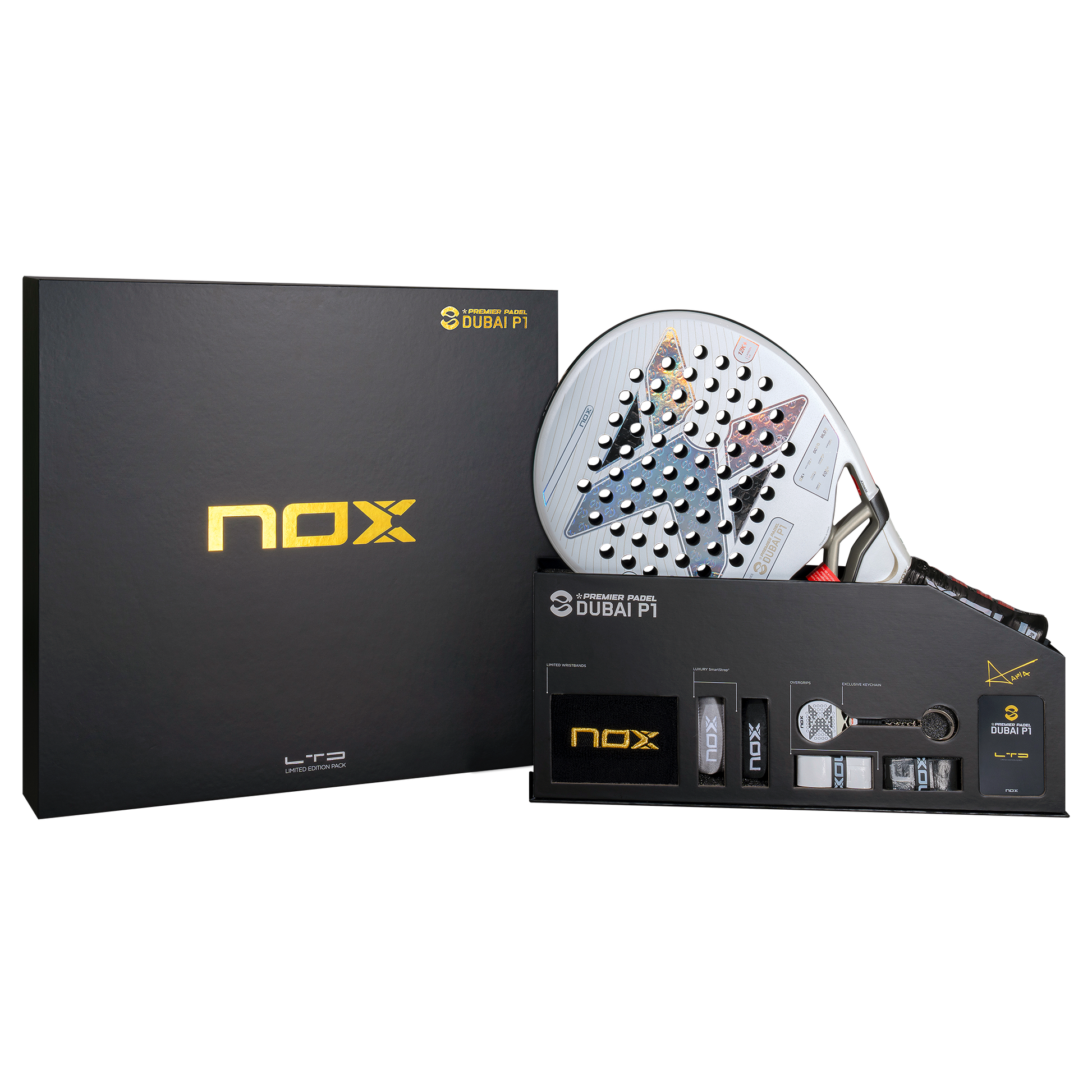 Komplett pakke for samlere Du får en eksklusiv samling med racketen. Pakken inkluderer to NOX-håndledd, to overgrip og to SmartStraps. En commemorativ medalje markerer denne spesielle utgaven.